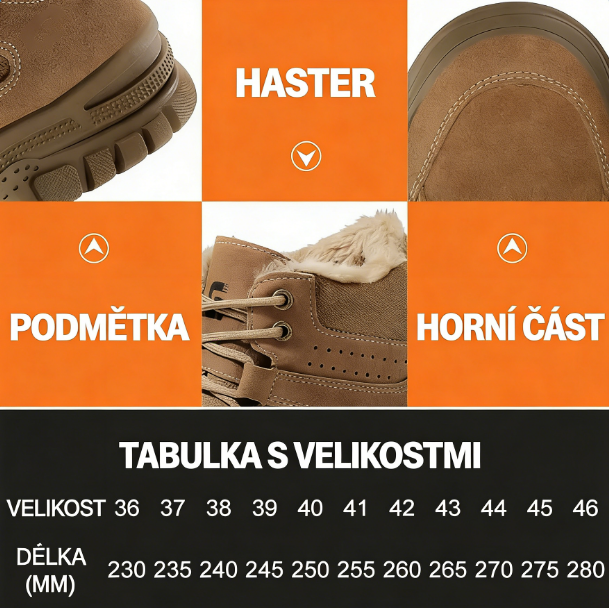Odolná proti skluzu a opotřebení – gumová podešev nabízí perfektní trakci na zimních površích – ať už jsou mokré, zledovatělé nebo suché! 🌨️
